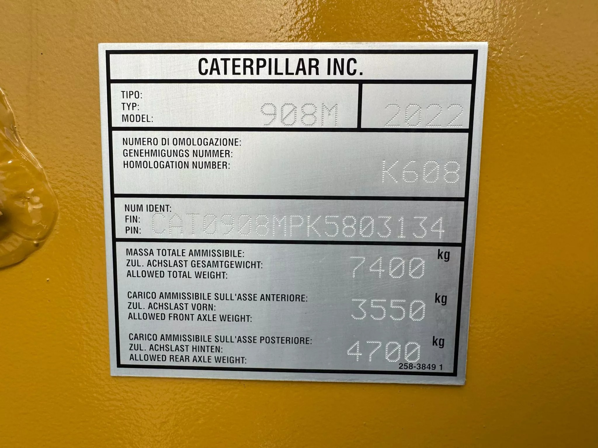 Caterpillar 908M CE certified.